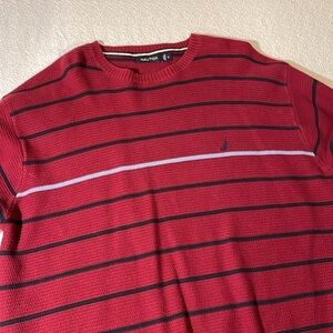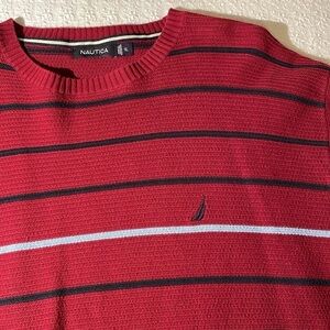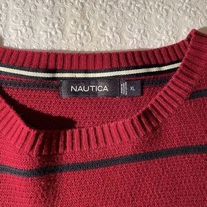 Nautica Men’s Crewneck Sweater Pullover XL Long Sleeve EUC Striped Red/Blue