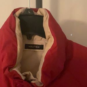 Nautica Men’s Down Puffer Coat, Red with Blue, Size L