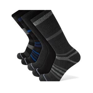 This Nautica men's crew sock pack includes 5 pairs in classic black, gray, and blue tones.