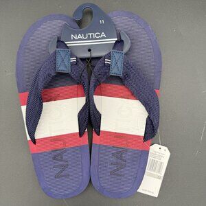 Nautica Mens Eccen Flip Flops Size 11 Navy Blue Red White Striped Sandals