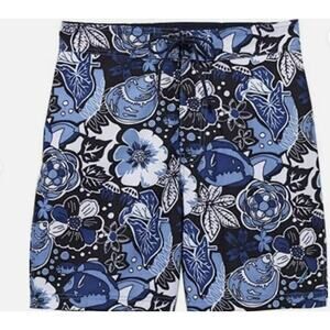 Nautica Mens Floral Blue Swim Trunks Mesh Brief Lining Medium