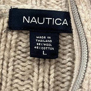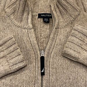 Nautica Men's Full Zip Sweater, Wool Blend, Heathered Tan, L