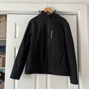 Nautica Mens Hooded Jacket Black Water & Wind Resistant Size Large