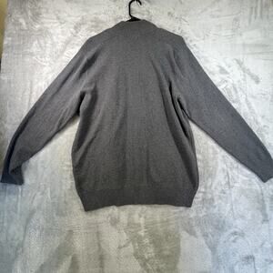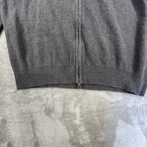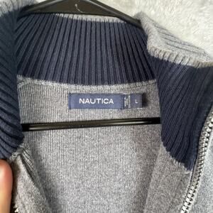 Nautica Mens L Full Zip Mock Neck Cardigan Sweater Gray Horizontal Rib Pockets