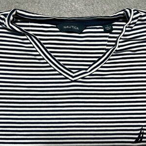 Nautica Men’s Large Blue White Striped T-Shirt V-Neck Cotton Sailing Casual