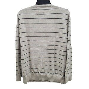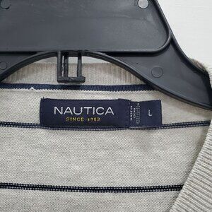 Nautica Men's Light Gray & Navy Stripe Preppy V-Neck L/S Sweater Size L