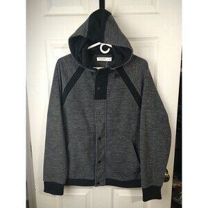 Nautica men's hooded slim fit grey black fleece full zip snap close long sleeve jacket in excellent condition no flaws