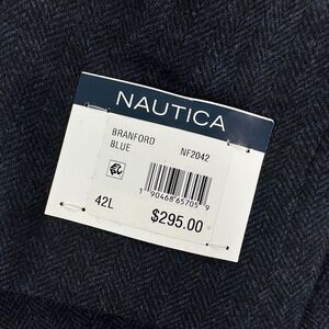 Nautica Mens Modern Fit Solid Herringbone Tweed Sport Coat Navy Blue 42L