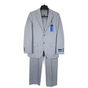 Nautica Men's Modern-Fit Stretch Cotton 2-Piece Suit Grey Solid 42L 36x32 NWT