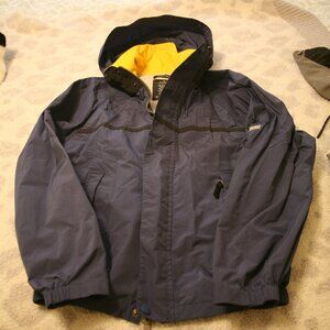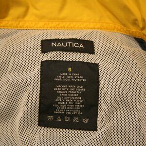 Nautica Men's NS 83 Full-Zip Hooded Rain Jacket, Size Small, Blue w/Yellow Trim,