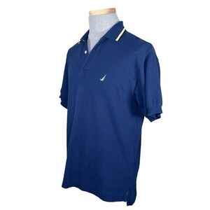 Nautica Men’s Navy & Gold Polo with Sailboat Print on the Back Size Medi…