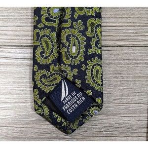Nautica Mens Neck Tie Green Paisley Designs 100% Silk 56" L X 4" W