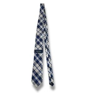 Nautica Men's Necktie Blue Gray Navy Plaid 100% Silk Classic Preppy New W/Tags