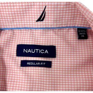 Nautica Mens Pink Gingham Dress Shirt XL Regular Fit - Tag 17 - 17 1/2