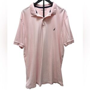 Nautica Men’s Pink Short Sleeve Polo Shirt with Navy Logo | Size XXL
