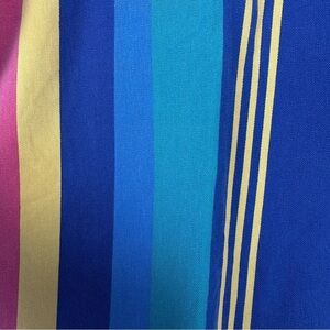 This Nautica Men's Polo Shirt in size Medium features a blue striped design with a vintage 90s Y2K aesthetic. Made from 100% cotton in a woven fabric, it has a collared neckline, short sleeves, and a pullover closure with button accents. The shirt has a preppy style with a logo detail, perfect for casual or travel occasions in the summer, fall, or spring seasons. Suitable for activities like walking, rugby, and golf.