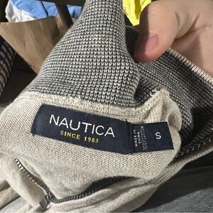 Nautica Men’s Quarter Zip Sweater Cream Size Small Preppy Vintage