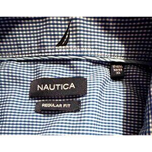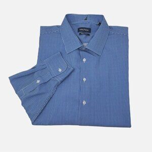 Nautica Mens Regular Fit Blue Checkered Dress Shirt Size XL