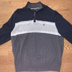 Nautica Mens Size Extra Large Navy Blue Gray Knit Pullover Sweater 1/4 Zip
