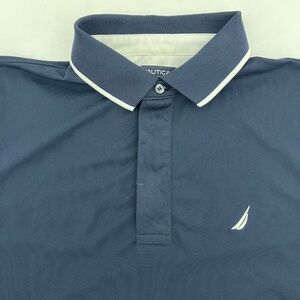 This Nautica Men's Size L Navy Blue Polo Shirt is a classic and versatile piece perfect for travel, casual occasions, or even gym training or golf.