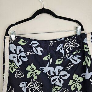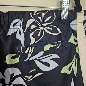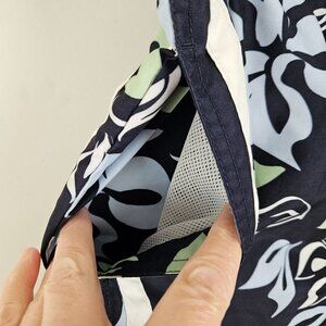 Nautica Mens Size M Floral Tropical Swim Trunks Navy & Green Mesh Lining Beach