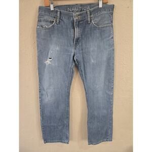 Nautica Men's Slim Fit Jeans, Blue, Straight Distressed, Size 33x30