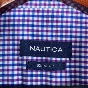 Nautica Mens Slim Fit Purple Blue Gingham Dress Shirt M a1391