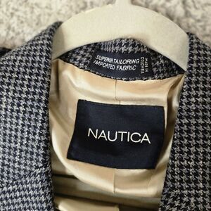 Nautica Men's Sport Coat 44R Gray Houndstooth Silk Wool Linen Blend Blazer
