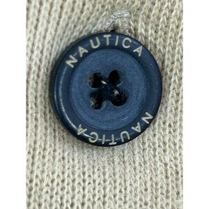 Nautica Men's Sweater Vtg Tan M 2-Button Cotton Shawl Collar Logo Long Sleeve