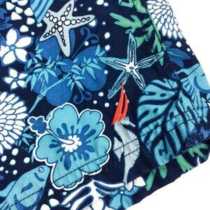 Nautica Mens Swim Trunks 2XL Blue Floral Sea Life Elastic Waist Mesh Lining