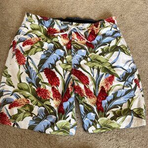Nautica Men’s Swim Trunks Bathing Suit Size XL Tropical Hibiscus Tiki Vacation