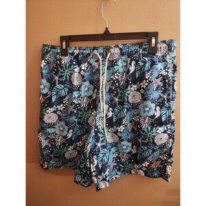 Nautica Men's Swim Trunks Blue Floral Tropical Hawaiian Drawstring Size M