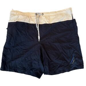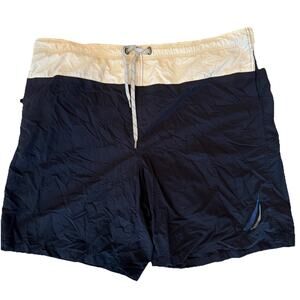 Nautica Men’s Swim Trunks Size Large Navy Blue White Waistband Mesh Lining