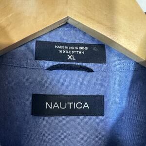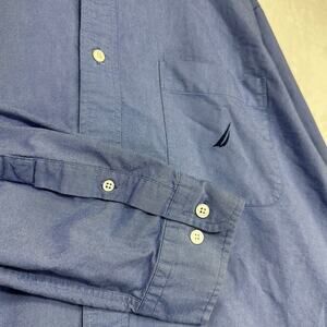 Nautica Mens Tall Size XL Blue 100% Cotton Buttoned Dress Shirt Barrel Cuff Logo