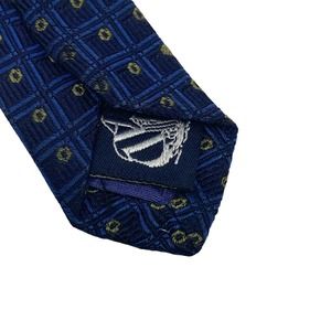 Nautica Men's Textured Necktie 2 Tone Navy Blue Squared Yellow Circles