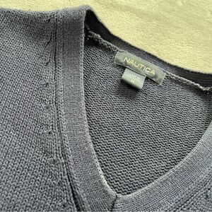 Nautica Men’s V-Neck Sweater Size M Navy Blue Cotton Grandpa Core 90s Y2K