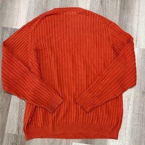 Bold orange crewneck sweater by Nautica. Ribbed texture adds style. Ideal for casual wear.