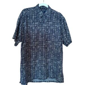 Nautica Mens Vintage Navy Blue Short-Sleeve Button-Up Shirt 100% Easy Care Silk
