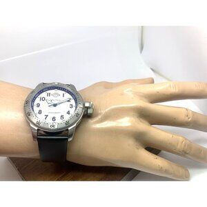 Nautica Men's Watch N14524 Quartz White Dial Date Black Leather Band 46mm
