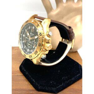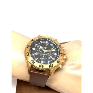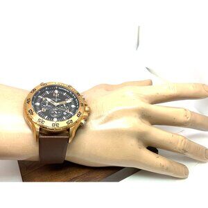 Nautica Men's Watch N18523 Quartz Black Dial Rose Gold Tone Leather Band 48mm