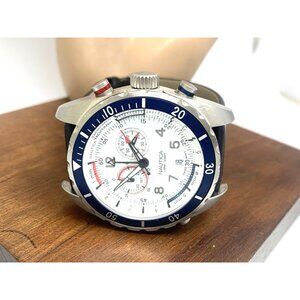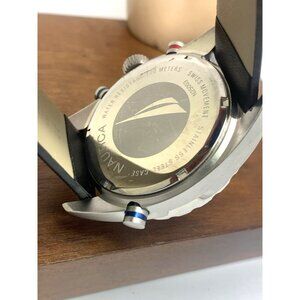 Nautica Men's Watch N25003 Swiss Quartz White Dial Date Black Leather Band 42mm