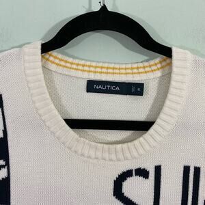Nautica Men's White & Multicolor Intarsia Sailing Knit Sweater Size XL