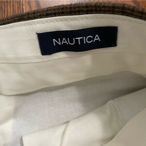 These are men's Nautica dress pants. They are 100% wool and a size 36x30. They are pleated and cuffed, freshly dry cleaned and in perfect condition.