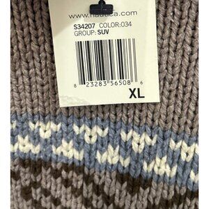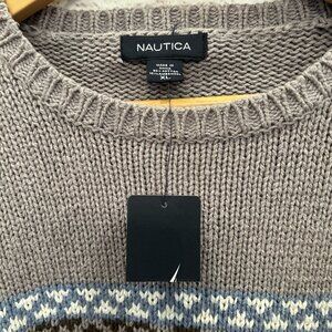Nautica Mens XL Classic Fair Isle Crewneck Sweater Gray Blue Cotton Lambswool