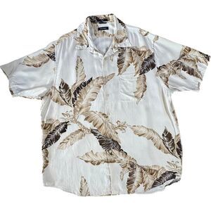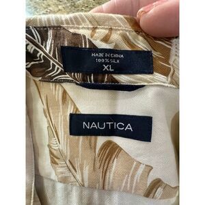 Nautica Men's Size XL TALL 100% Silk Tropical Hawaiian Resortwear Summer Casual Relaxed Fit Short Sleeve Button Down Shirt