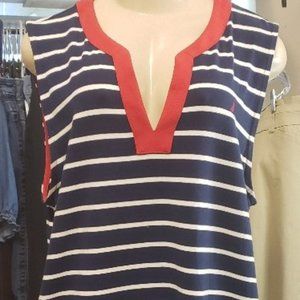 Blue and white striped with white trim. Very comfortable fabric. XXL. Please ask questions. I will be happy to answer any questions. ANY OFFER WILL BE CONSIDERED