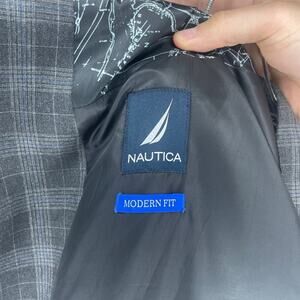 Nautica Modern Fit Two Button Double Vent Suit Jacket Blazer Sport Coat 44L. Gray plaid. 2-Button, Side-Vented, Modern Fit. When your outfit needs a promotion, this sport coat steps in like a boss. Designed with a slim, modern fit, it's all business with a touch of casual charm.