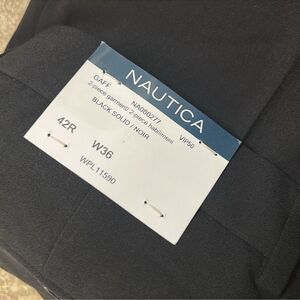 Nautica Modern Fit Black Mens Jacket Suit. Stock photo for reference only. JACKET:: Pit to Pit 20.5", Length 29.5", Sleeve 25". PANTS:: Waist 37" Rise 11.5", Length 41", Inseam