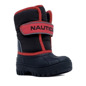 The Nautica Kids Albermarle Boys Snow boot is great for staying warm and dry. Features a waterproof rubber shell and warm lining. NWT Size 5