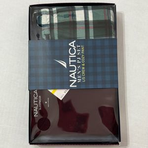 Nautica NWB Sz M Men's PJ Set Maroon/Green Multi Crew Neck Cozy Pants